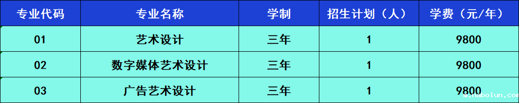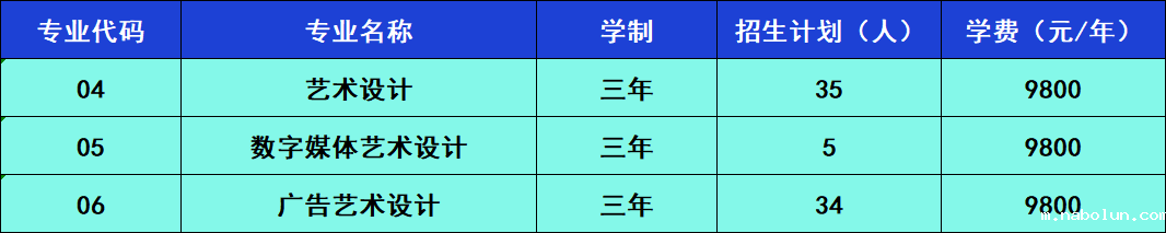 2023年艺术类专科(理科)征集志愿专业一览表