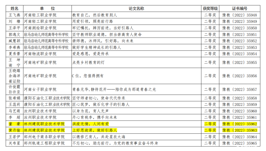近日,河南省教育厅公布了“当好引路人,一起向未来”师德主题教育征文和师德师风优秀案例评选结果,我校选送的参赛作品获得师德主题教育征文二等奖2项、三等奖4项。